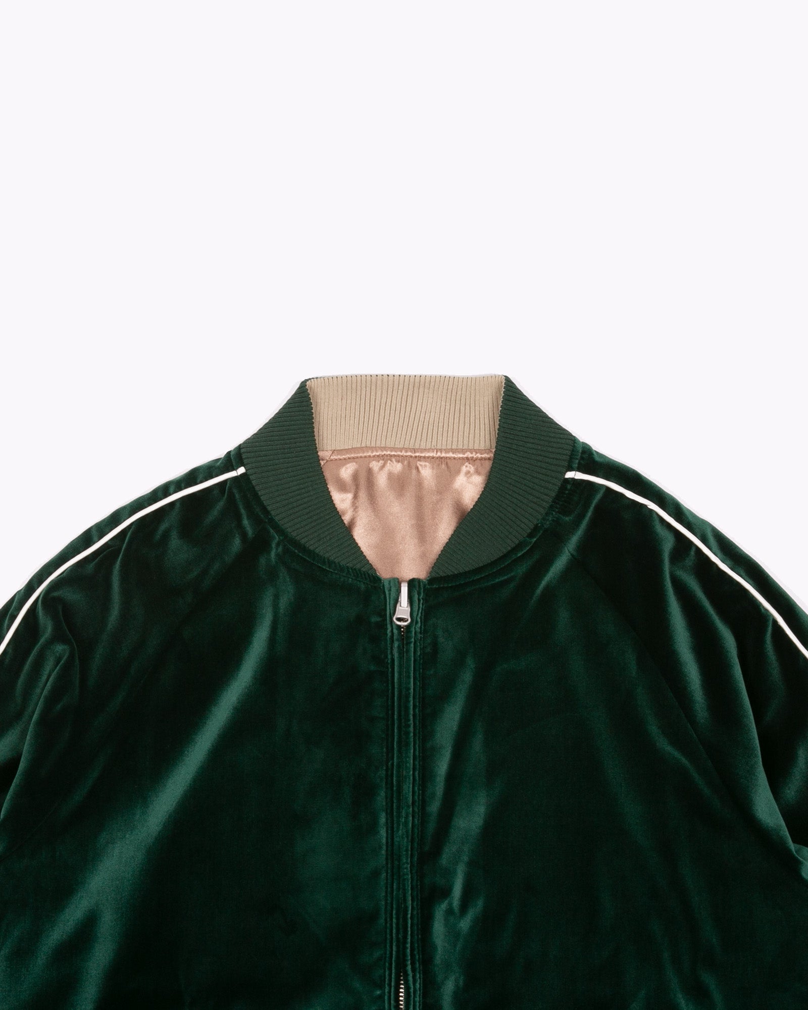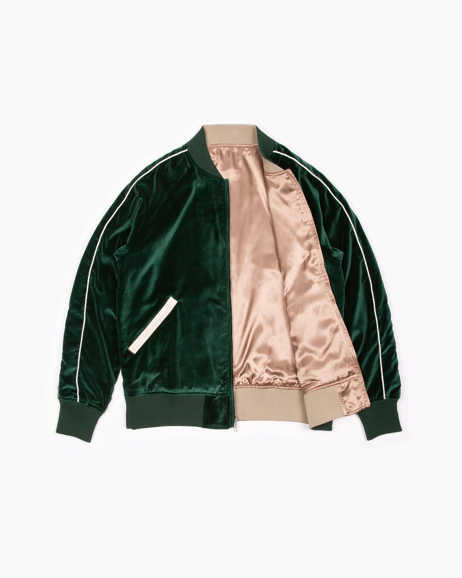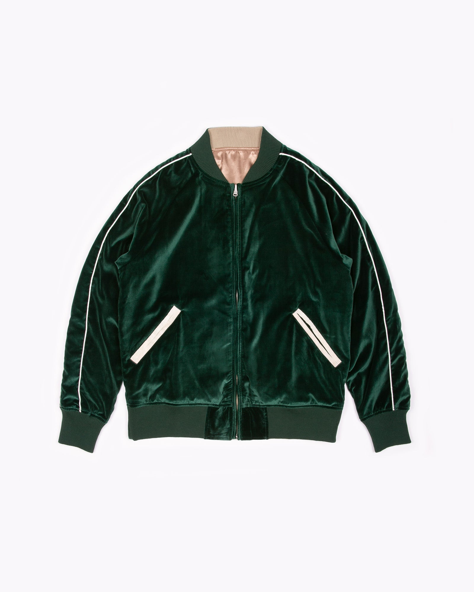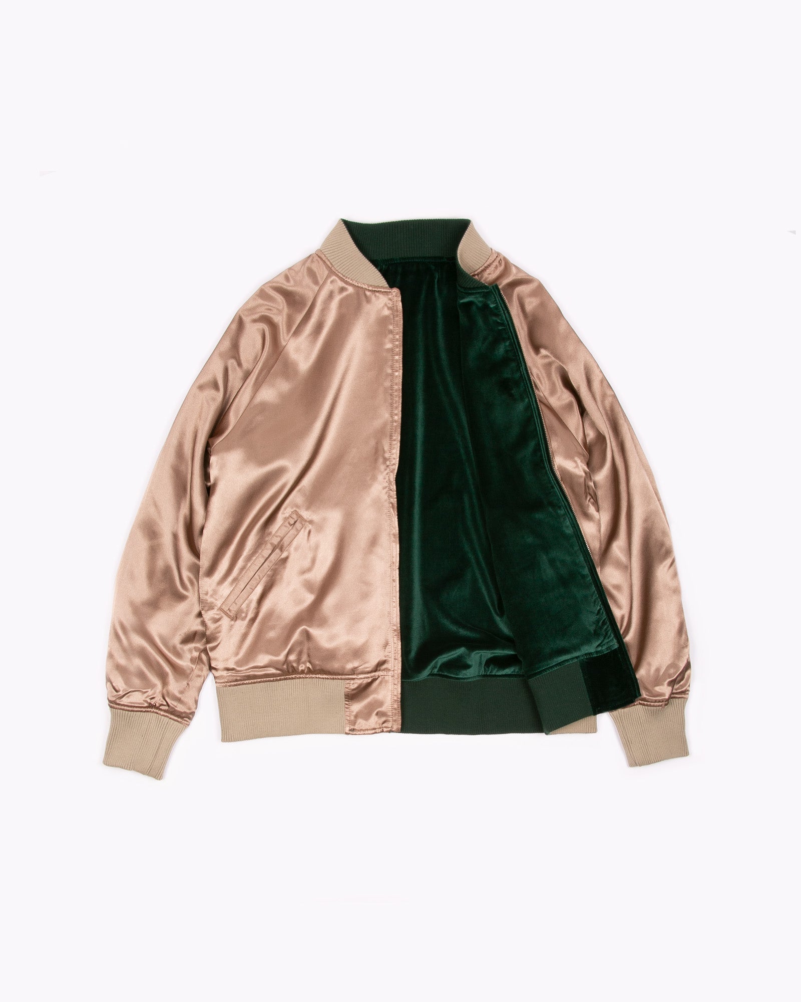 The Velvet Bomber is our take on the quintessential bomber silhouette upgraded in a modern velvet fabric with a reversible twist.