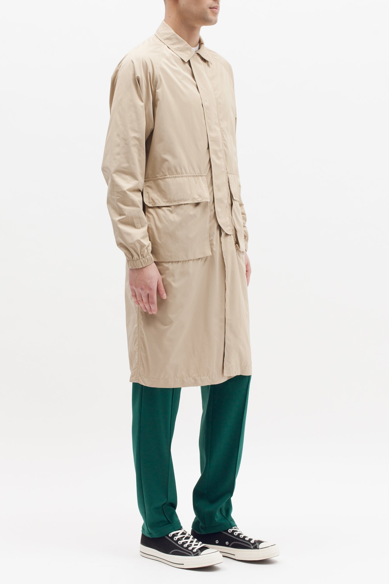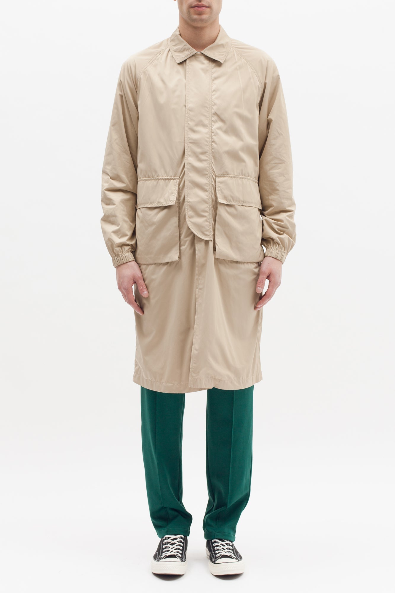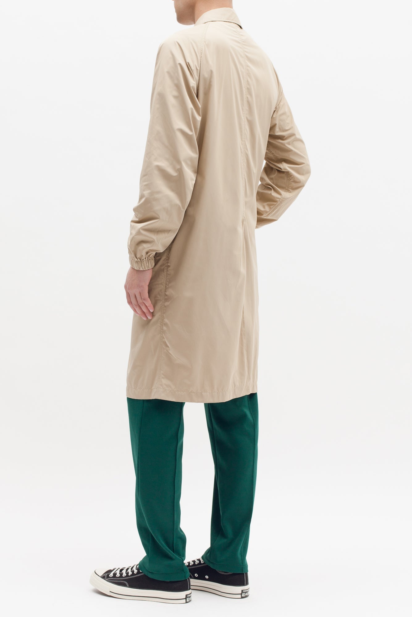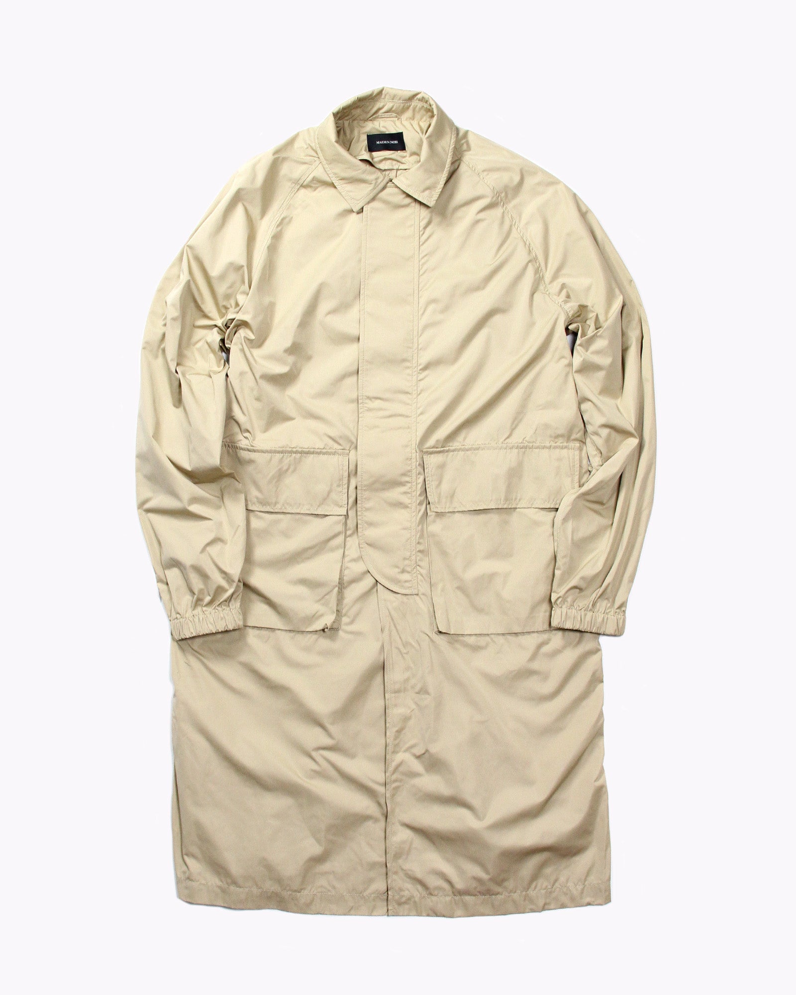 The Long Trench Coat is a lightweight mac style coat produced in nylon.